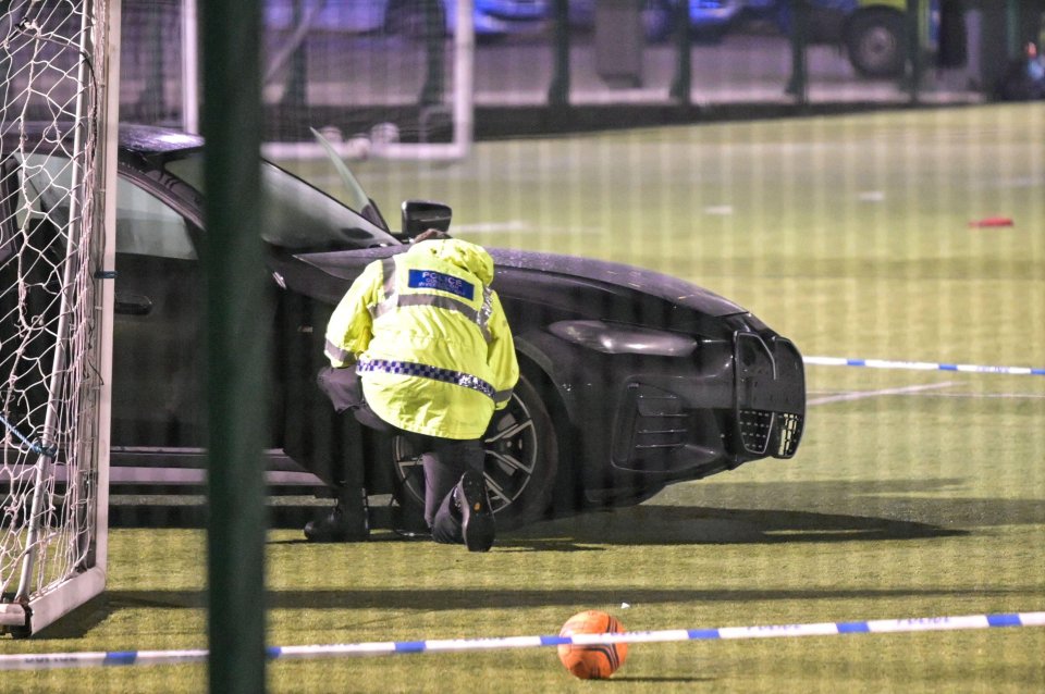 Officers were not stationed at the scene in Shap Road on Thursday but forensic tape covered two panels of metal fencing on the pitch parameter, which appeared to have been flattened from the collision.